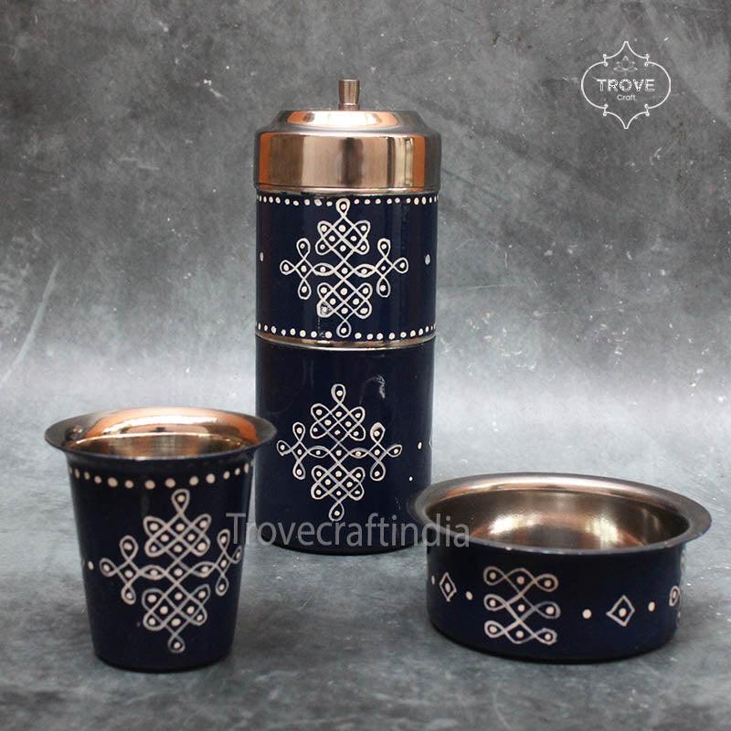 Stainless steel products are not only stylish, but durable. They for one are "not plastic". Enjoying the wonderful and tasty-full coffee in the golden style of olden method. This coffee filter Comes with Tumbler and Katori.