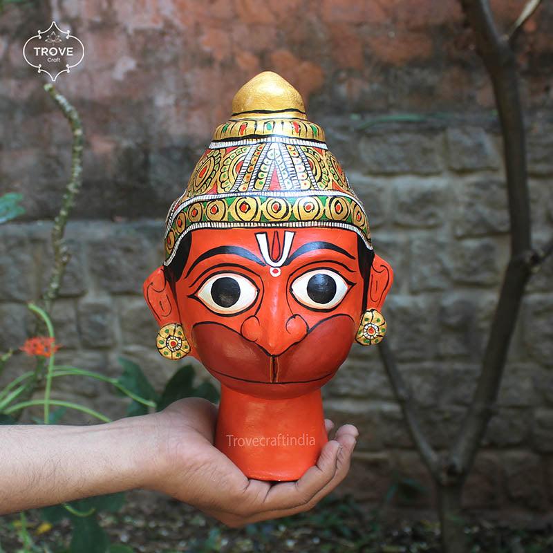 Cherial Figure of Hanuman, the companion of Lord Ram, hand-made and painted in the traditional Cherial style of Telangana.