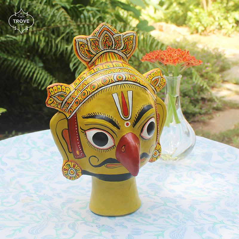 The mythical lord of eagles, hand-made and painted in the traditional Cherial style of Telangana.