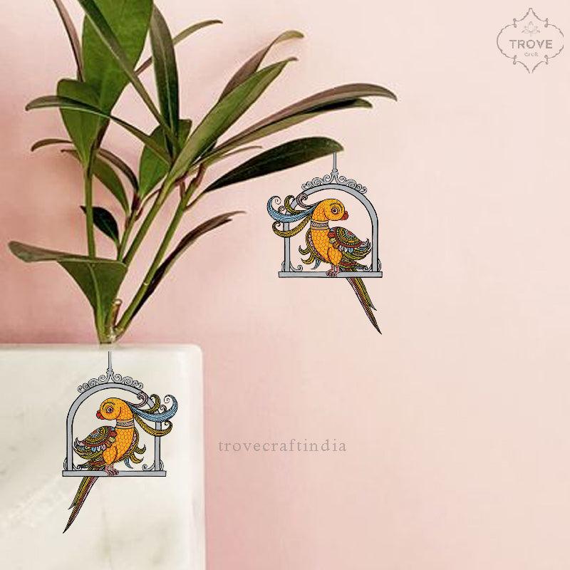 Set of 2 Pattachitra themed Parrots - Wall Decorative Stickers / Decal