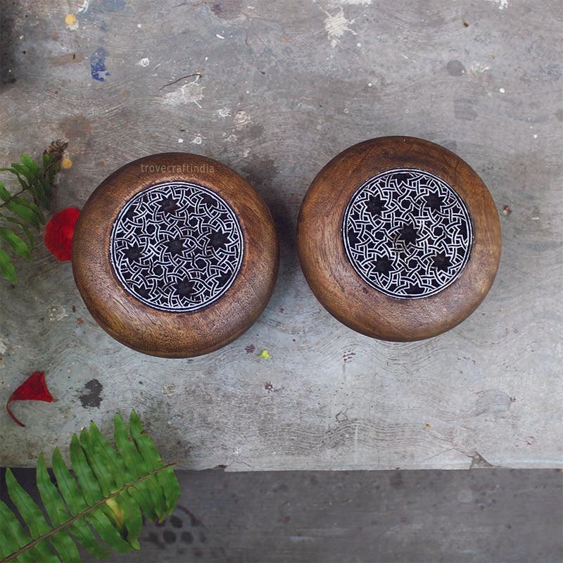 Wooden carved stamps stars door knob - set of 2